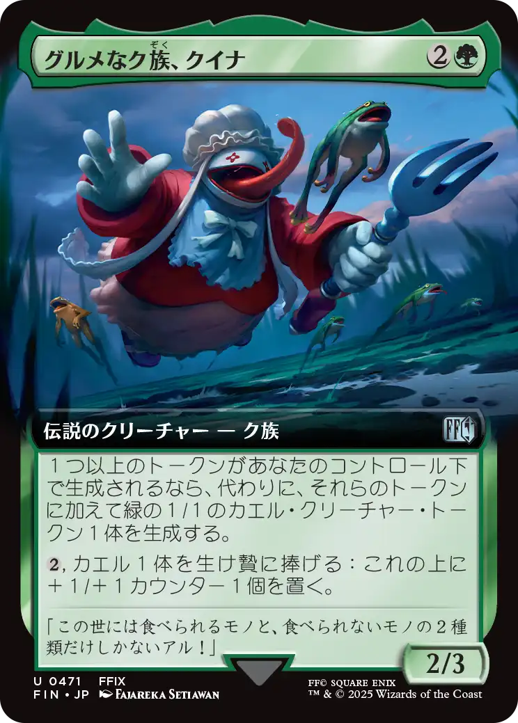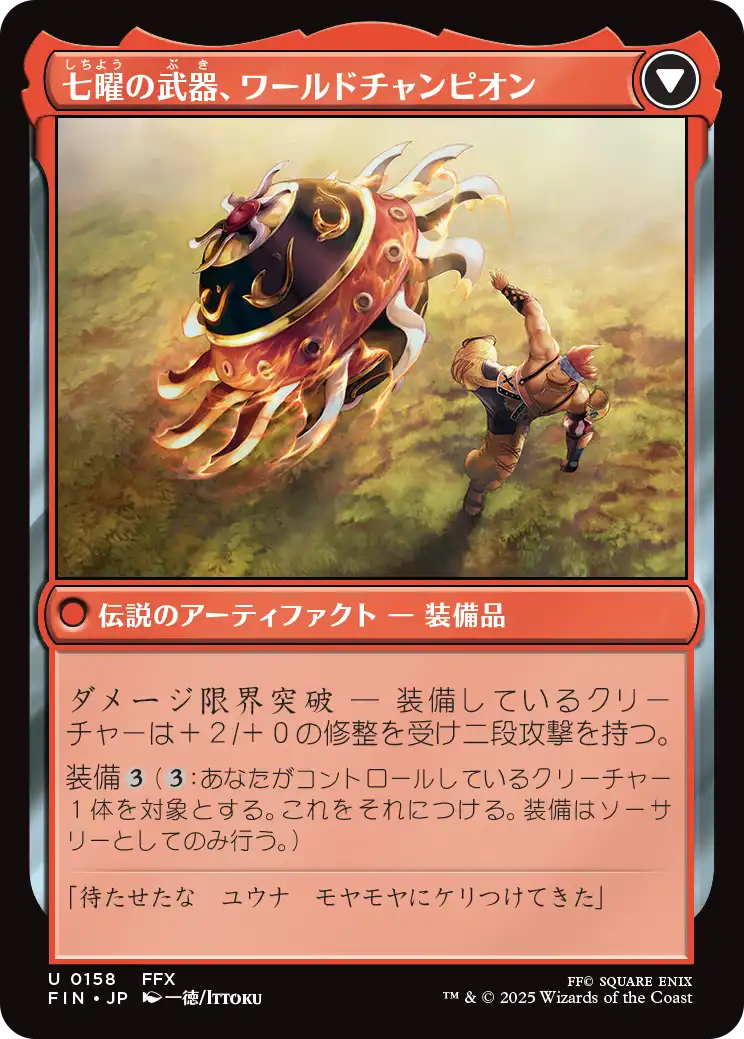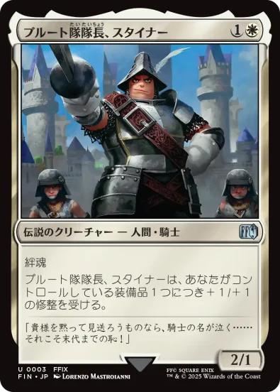 「FINAL FANTASY」コラボ!装備品で強くなるスタイナー!トークンを産みカエルを食べ自己強化クイナ!機械が出ると強くなるティーダ!ほか 新商品 2025.05.21 コメント3件 2025/05/21 2025年6月13日発売予定の特殊セット「マジック:ザ・ギャザリング――FINAL FANTASY」の情報があったのでご紹介いたします。 コメント3件 2025/05/21