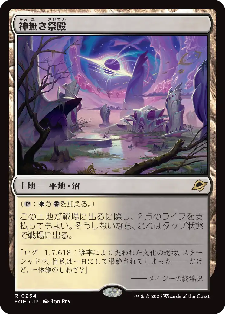 【久遠の終端】新カードが色々公開!敵の生物を道連れにしてリアニするエンチャ!毎ターンロボを産むサミ!ショックランド色々!ほか 久遠の終端 2025.06.22 コメント7件 2025/06/22 2025年の8月1日に発売される「久遠の終端」の情報があったのでご紹介いたします。 公式該当記事 特殊絵 土地 統率者 さらに、公式該当記事のリンクから世界観の説明記事もアップされておりました。 ぜひ公式もチェックしておきましょう! コメント7件 2025/06/22