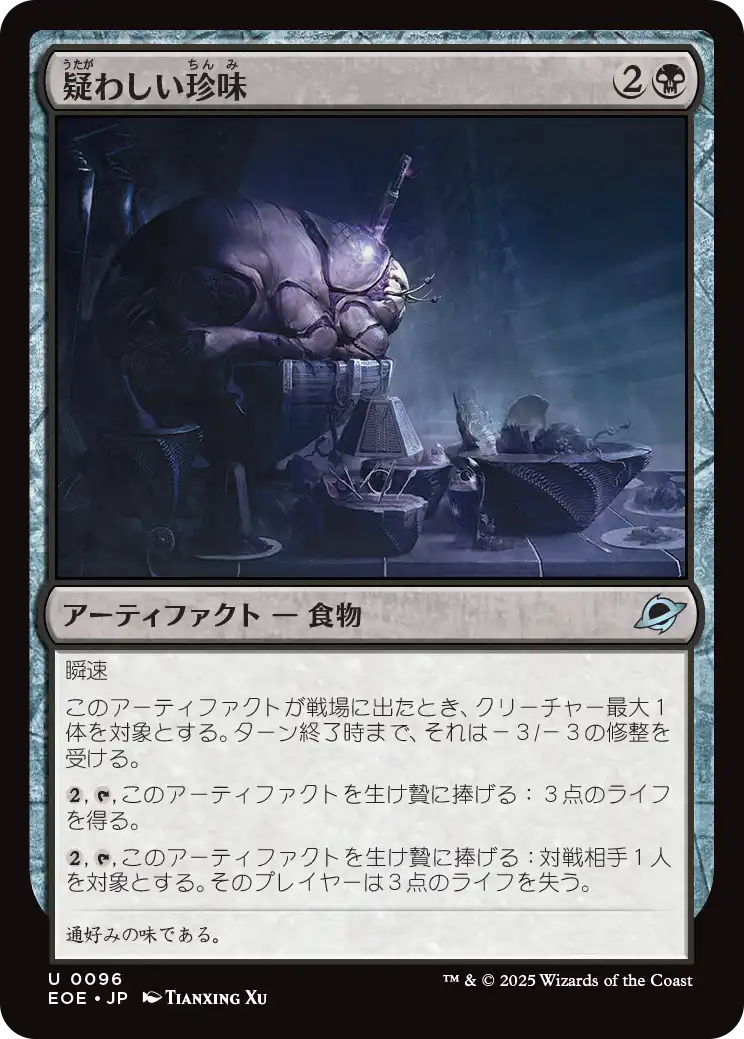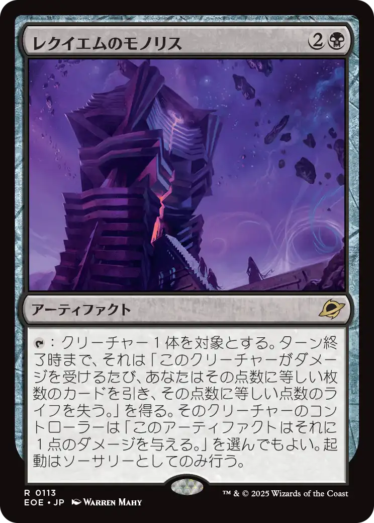【久遠の終端】1マナの追放除去オーラ!ドローンを産むロボット!ライフ分デッキを削るソーサリー!ほか 久遠の終端 2025.07.17 コメント6件 2025/07/18 2025年の8月1日に発売される「久遠の終端」の情報があったのでご紹介いたします。 【久遠の終端】駿河屋にて予約開始!プレイブースターやコレクターブースターも!構築済みビギナーボックスも登場!2025年の8月1日に発売される「久遠の終端」の予約情報があったのでご紹介いたします。現在出ている久遠の終端の情報はこちらプレイ・ブースターBOXプレイ・ブースターBOXコレクター・ブースターBOXコレクター・ブースターBOX統率者デッキ2... コメント6件 2025/07/18